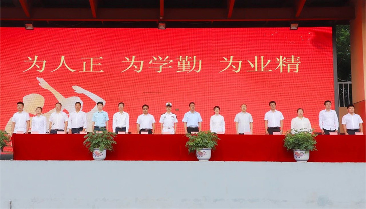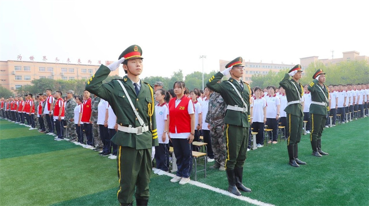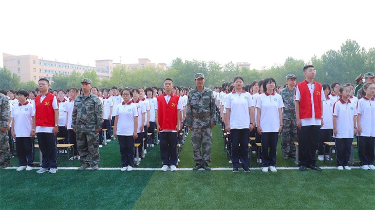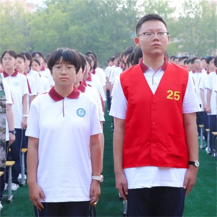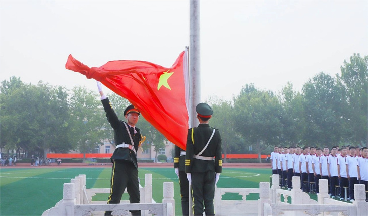 武邑宏达学校2023级高一年级新生军训总结大会在鲜红的国旗下、在庄严的国歌声中正式拉开帷幕。威严的国歌,迎风飘扬的国旗,一排排整齐的校服,形成了宏达学校里最靓丽的风景线。