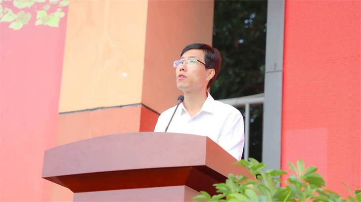 首先,金校长代表学校致辞,向全体新生表示了热烈的欢迎,并希望同学们能够以积极的态度、昂扬的斗志、高标准严要求衡量规范自、锻炼自己,通过军训,外练筋骨,内强意志,展现我们宏达人朝气蓬勃的青春风采。