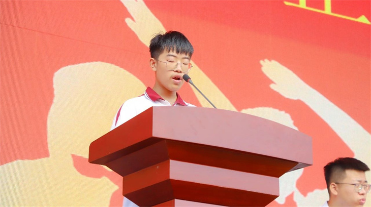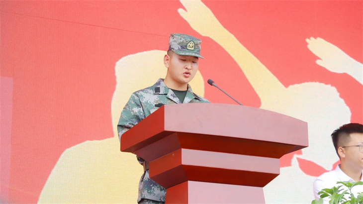 孔垂永同学作为新生代表发言,他表示此次军训是大家磨砺自我的宝贵机会,并号召大家听从教官指挥,遵守纪律,刻苦训练,燃烧青春热血,激扬青春力量。