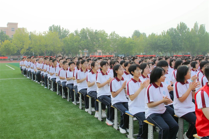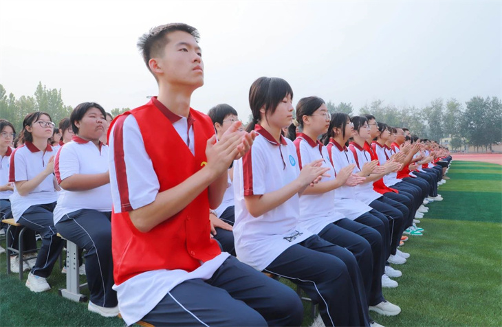 我校高一新生在国旗下喊出了自己铿锵有力的誓言,嘹亮的誓言回响在校园上空,传递出同学们的百倍信心。