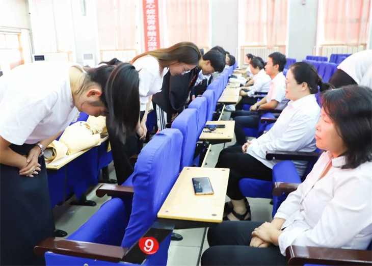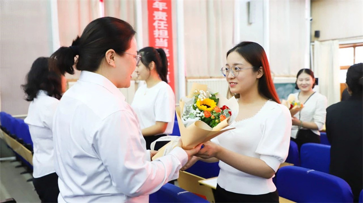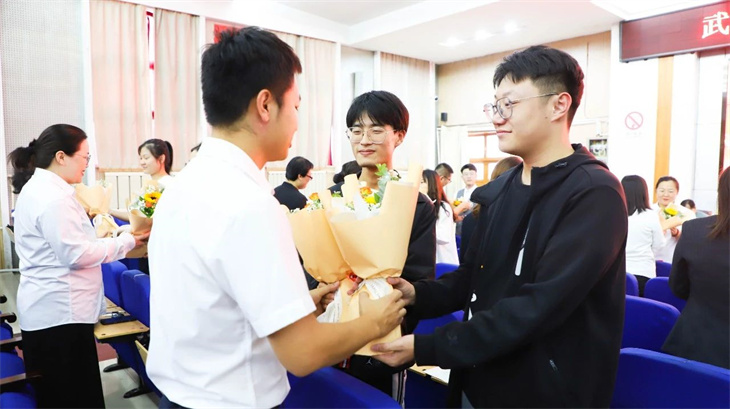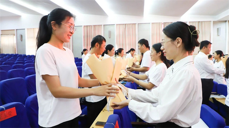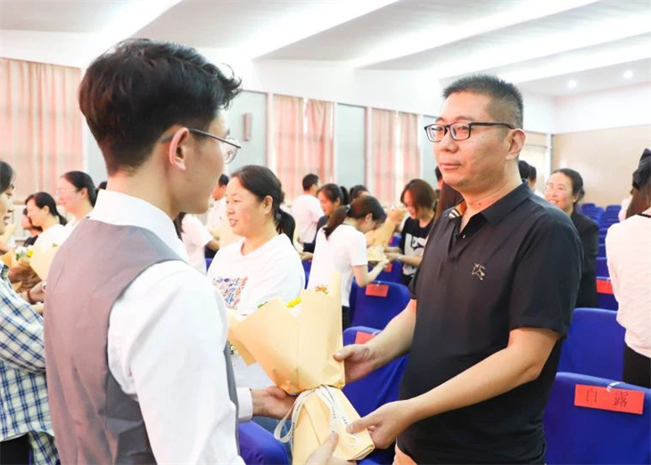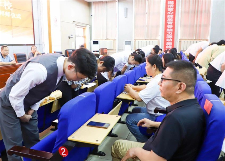 活动伊始,高二年级级部主任卢敏和高三年级级部主任郭梦杰分别宣读了本年级的师徒结对名单。青年教师向指导教师鞠躬行拜师礼,并献上精心准备的鲜花,以示虚心学习的决心,感谢师傅悉心栽培。师徒双方就此签订师徒协议。从此,名师将与新秀携手,共同进步,共育英才,为校添彩。
