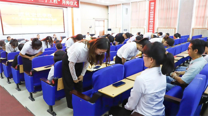 以师带徒促成长,青蓝携手育英才。9月10日下午,为进一步提高青年教师的教育教学水平,充分发挥骨干教师的传、帮、带作用,建设一支师德高尚、专业过硬的教师队伍,我校高二年级和高三年级共同举办了武邑宏达学校“三子工程”拜师仪式。高二年级主任杜永生、高三年级主任吴少杰,高二年级级部主任卢敏、万冬雪,高三年级级部主任郭梦杰、申红娟、袁占军参加仪式。高三级部主任袁占军主持会议。