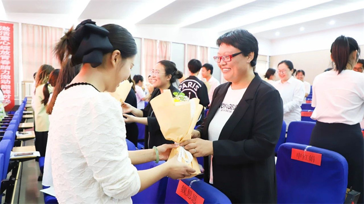 高三年级级部主任申红娟宣读了《优秀师徒评选办法》,公布了“优秀师徒”评选标准,以此激励师徒共同进步,提升教师专业化水平。