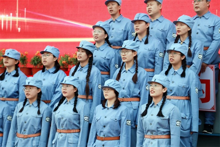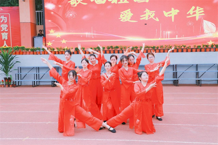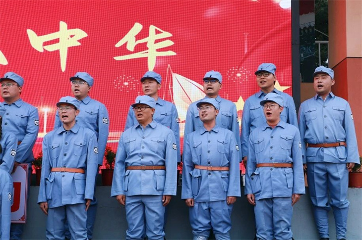 本次比赛师生分组进行,通过形式多样、独具匠心的合唱,唱响《团结就是力量》、《军民大生产》、《保卫黄河》、《没有共产党,就没有新中国》、《我和我的祖国》、《我爱你中国》等一首首催人奋进的经典红歌,上演了各种精心编排的舞蹈。师生们用饱满的热情、激情嘹亮的歌声抒发了对新中国建设者的无比崇敬,用歌舞表达了励志报国、传承红色精神的坚定决心,为祖国献上祝福。
