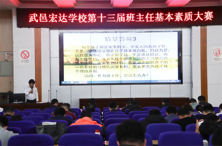 为加强学校班主任队伍建设,进一步提高班主任专业素养和实践能力,落实立德树人根本任务,贯彻习近平总书记“四有”好老师和“四个引路人”重要指示精神。10月25日至10月26日,我校在报告厅内举办了武邑宏达学校第十三届班主任基本素质大赛。