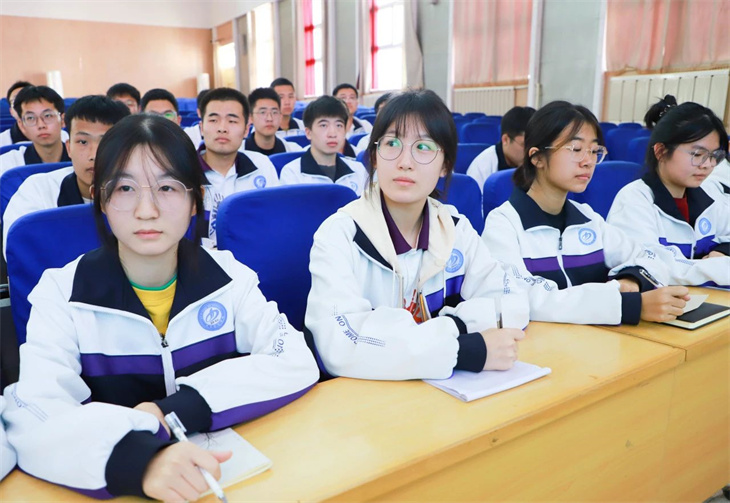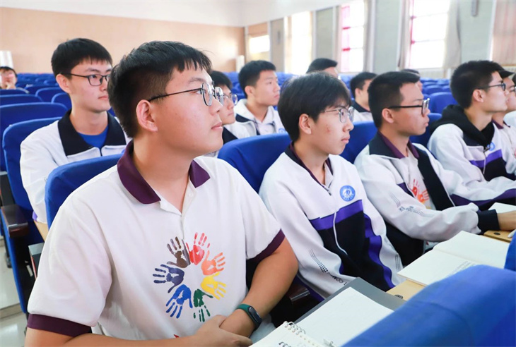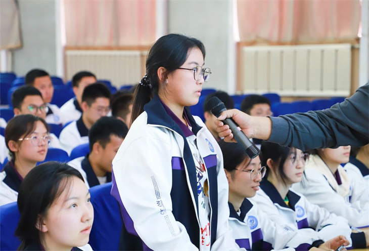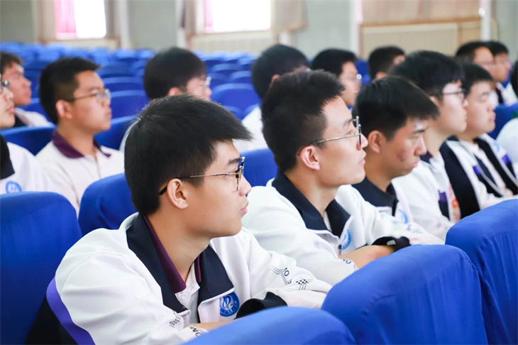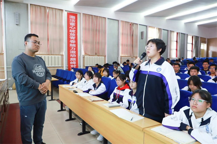 随后,他向同学们讲述了“中国天眼之父”南仁东和“28冠王”徐梦桃的故事,并邀请班级里的同学来分享自己的高考经历及感悟,希望同学们能坚持梦想,坚定信念。