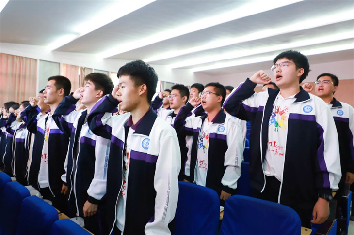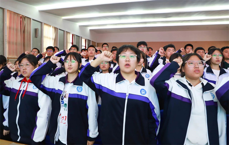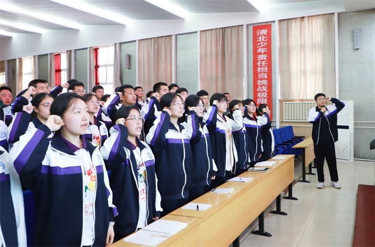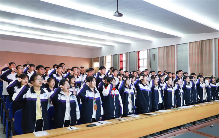 “不忘初心,牢记梦想;勇于面对,改正不足;自信自强,坚持修正;说到做到,绝不食言;明天,我定会遇到一个更好的自己;明年,我定会遇到一个成功的自己......”班会课在同学们铿锵的宣誓声中结束。