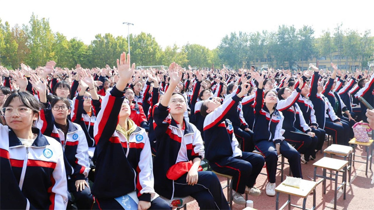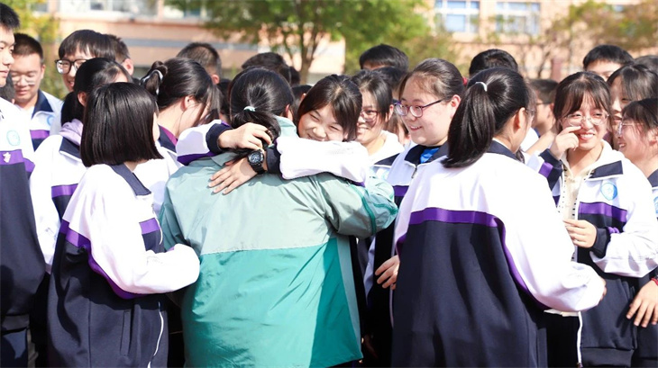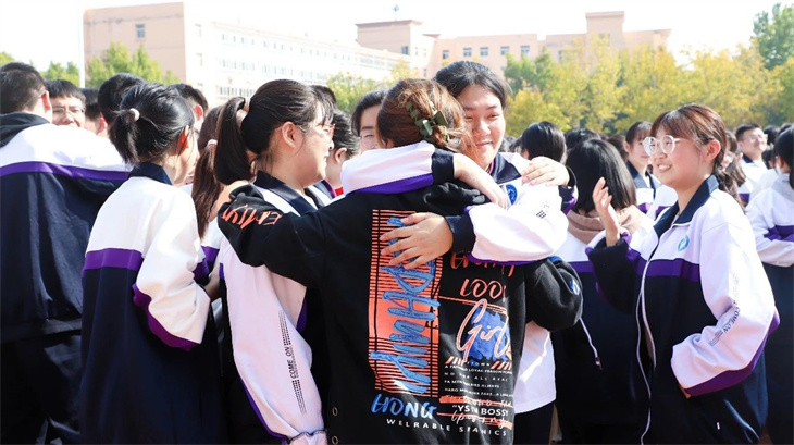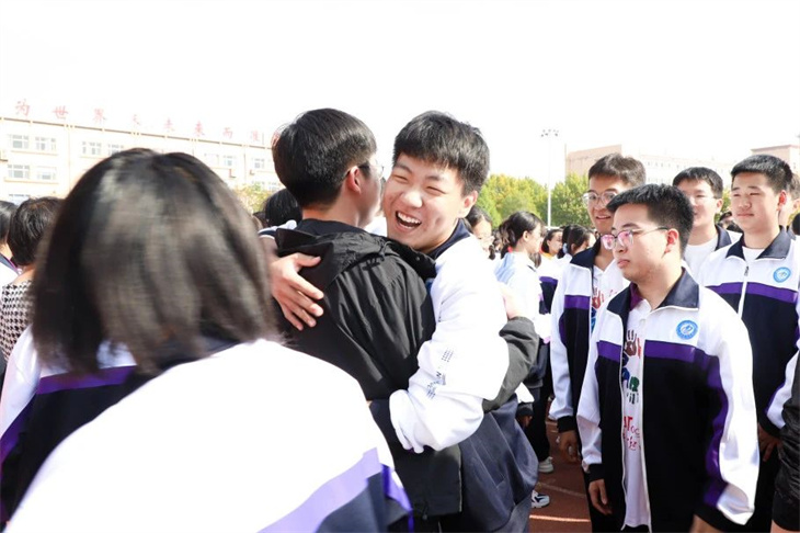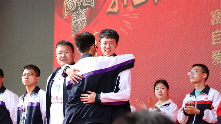 一声声呐喊,彰显着同学们追求梦想的豪情,真诚的拥抱、深深的鞠躬,让我们感受到了师生伙伴间的鼓励与温暖。动情的教育,总是能触动同学们的心弦,使人热泪盈眶。这是一场精彩纷呈、青春昂扬的演讲,这是一场青春与梦想的双向奔赴,将同学们心底最真挚的情感翻出、擦亮,照亮我们的未来路。