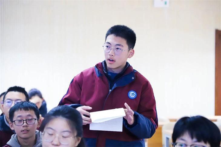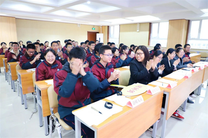 比赛现场热烈非凡。以“愚公应该移山”为立场的正方辩论队,与以“愚公应该搬家”为观点的反方辩论队,你来我往、唇枪舌战,结合自身思考,以富有感染力的语言向评委和观众表达观点。双方旁征博引,将比赛带入一个又一个高潮,观赛师生掌声与欢呼声不绝于耳。