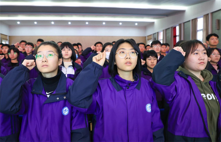 在班会课结束时,学生们进行了宣誓,表达了他们要直面挫折、逆风飞翔的决心。
