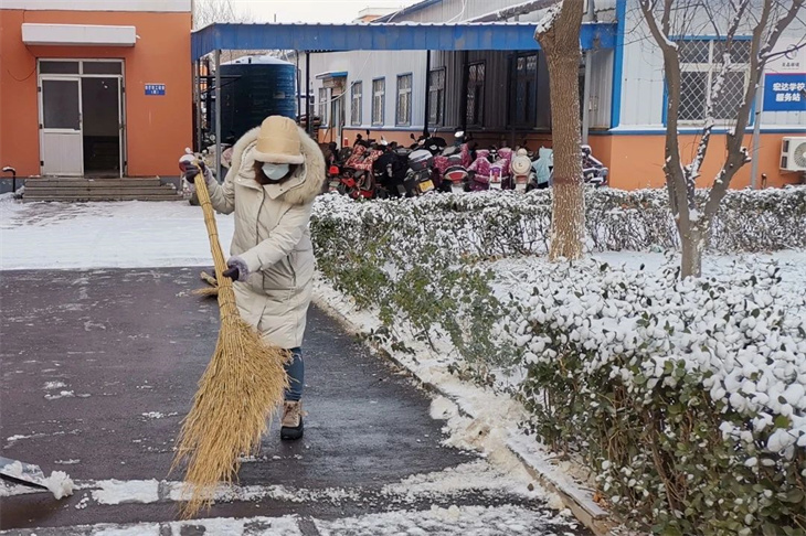 凛冬至,寒风冽,为给学生们创造一个温暖舒适的学习和生活环境,学校齐心协力,多措并举。校园提前储备了足够的防寒防冻物资,以应对突发情况。学校在教学楼和食堂等大门处安装上了防风门帘,阻挡冷气的侵袭;学生卫生间安装电热水器,为学生提供24小时温水洗手;同时加强对校园内道路、楼梯等易滑区域的清扫和防滑处理,及时清理积雪,对教学楼楼道、水房等地安装地毯防滑,确保师生行走安全。
