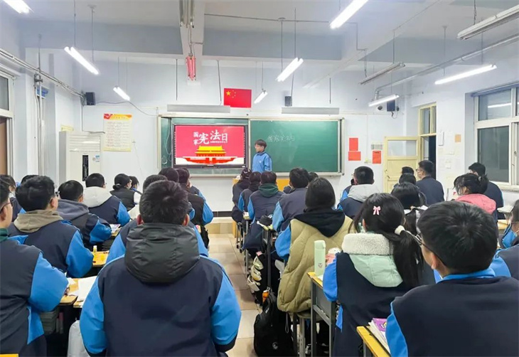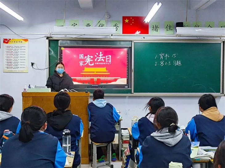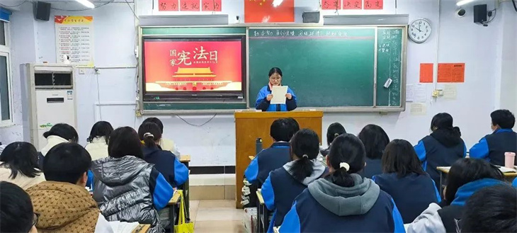 为了深入学习贯彻习近平法治思想,推动青年宪法学习宣传教育走深走实,认真做好党的二十大精神学习宣传贯彻,加强宪法实施案例宣传,在第十个国家宪法宣传日到来之际,我校组织各年级开展了一场以“国家宪法日”为主题的班会活动。