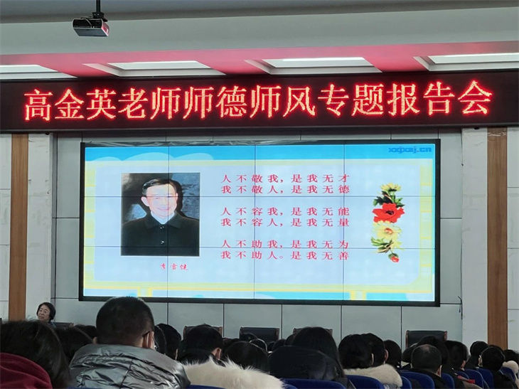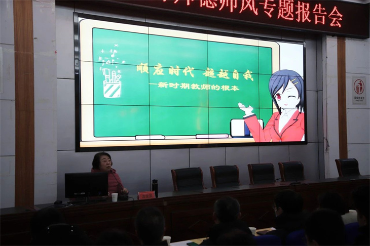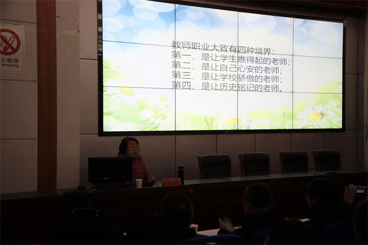 为进一步加强师德师风建设,提升教师职业道德修养,1月10日上午,我校教师共聚一堂,一起认真聆听了教育专家高金英老师《静心教书修真功, 潜心育人铸师魂》专题讲座。高老师那闪烁着教育智慧的精彩言论,让在座教师如沐春风,享受到了一次教育的饕餮盛宴。