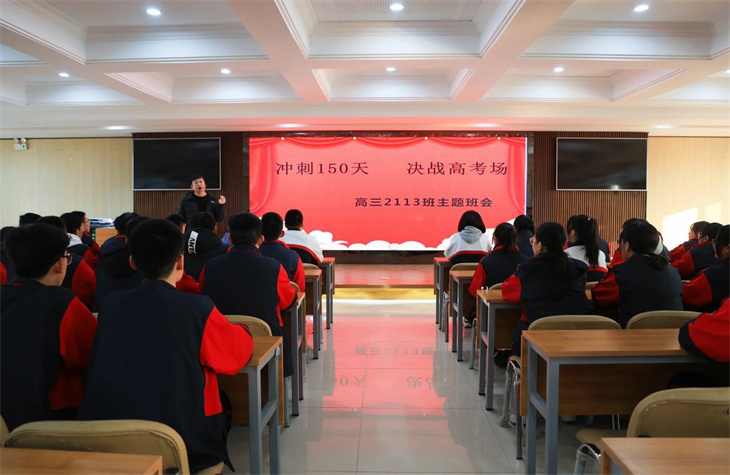 十二载寒暑易节如鸿雁飘然过,150日决战号角似惊雷滚滚来!为激发学生学习、备战斗志,缓解学生焦虑情绪,警醒部分迷途学生,我校高三年级2113班班主任史帅鹏老师在会议室内开展了一场以“冲刺150天 决战高考场”为主题的班会示范课,高三年级全体班主任到场观摩了此次班会课。