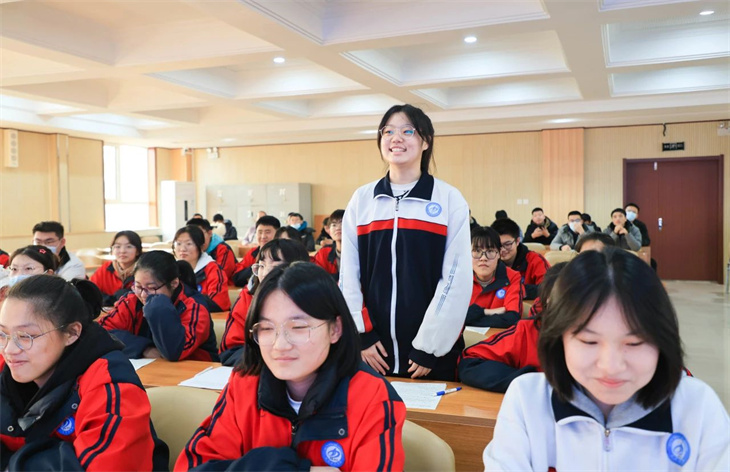 主题班会课以班主任主讲和形式多样的学生互动方式进行。班会伊始,史老师带领学生回望了自己从2021年9月到现在一步步走来的高中生涯,在这段时间里,他们经历了无数的努力和付出,拥有着数不清的感动和收获。史老师鼓励学生大声分享出自己在求学生涯中印象深刻的事情,大家一起畅谈曾经的趣事和收获,这些曾经作为学生成长的一部分,更加坚定了他们珍惜现在大好时光,全力以赴,不给青春留遗憾的信念!