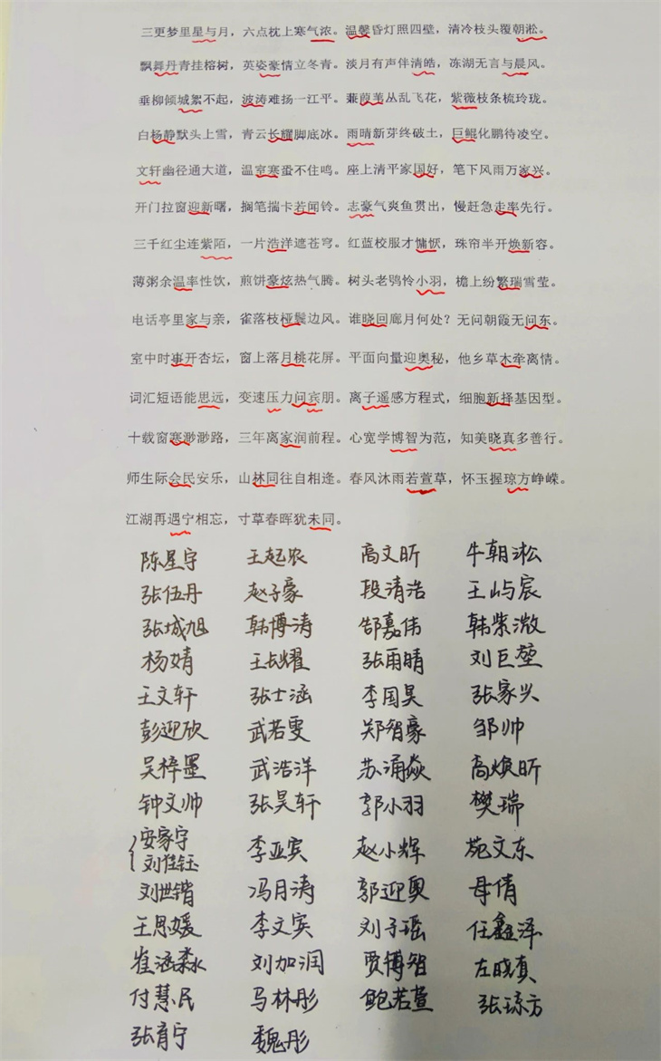 王志强老师告诉小编,他花了两天的时间完成了这首诗作,当时班主任建议给学生写点高考鼓励的话,就想着“写诗”,把学生的名字嵌进去,给他们的高中生活带来一点小惊喜,老师对每名学生的关爱和祝福都在“诗里”,希望学生们都能得偿所愿,考出理想的成绩!