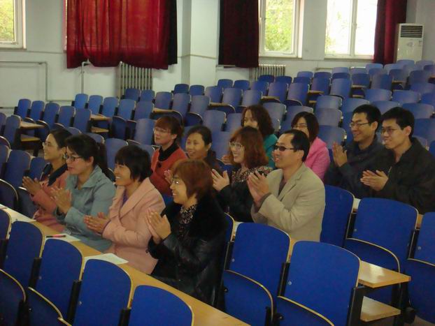 11月5日上午,杜永生老师在科学馆阶梯教室给英语老师们做了一堂名为《计算机辅助英语教学》的讲座。该讲座共分五个版块,分别论述了多媒体在导入课、单词教学、句子结构、课文教学以及听力教学中的作用,在很大程度上开阔了老师们的视野,丰富了老师们的多媒体使用方法,极大地调动了老师们充分利用多媒体的积极性。杜老师的讲座思路清晰,制图精美,用错落有致而不炫目花哨的PPT页面让老师们产生了强烈的共鸣。