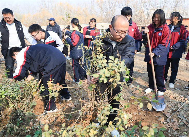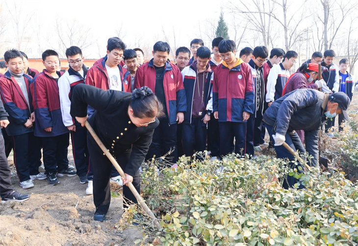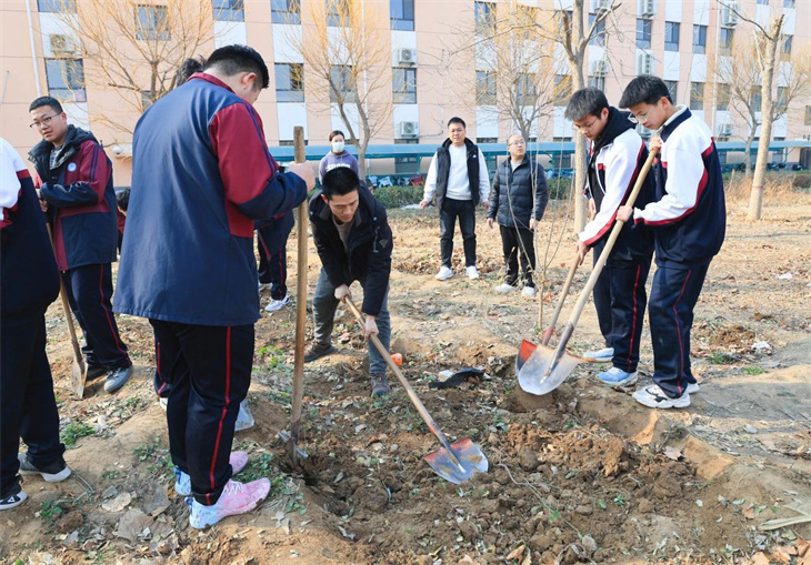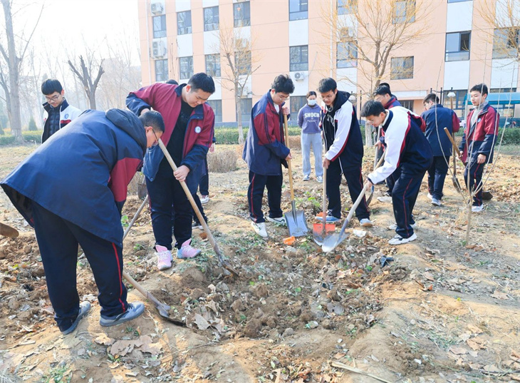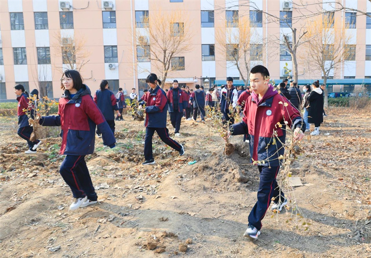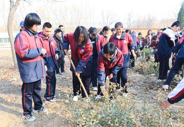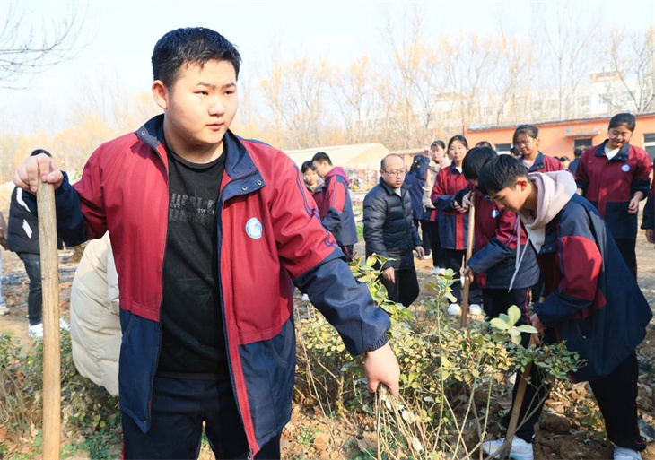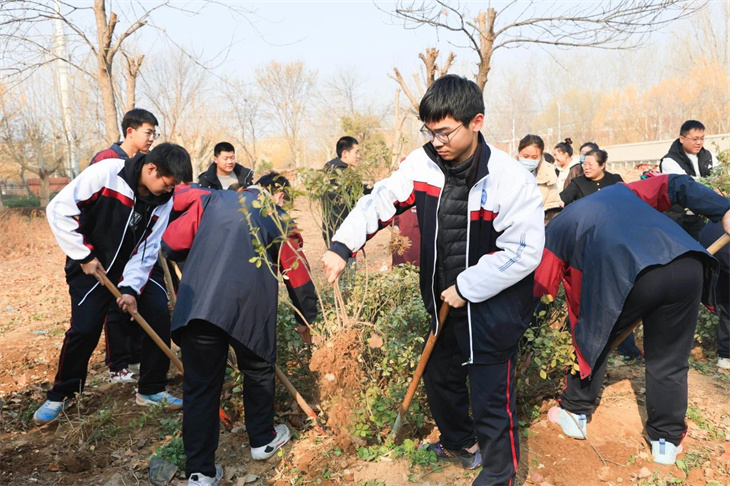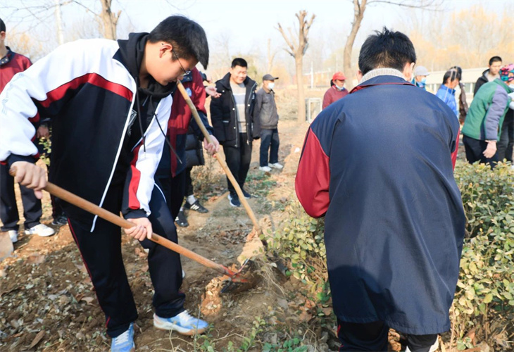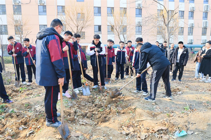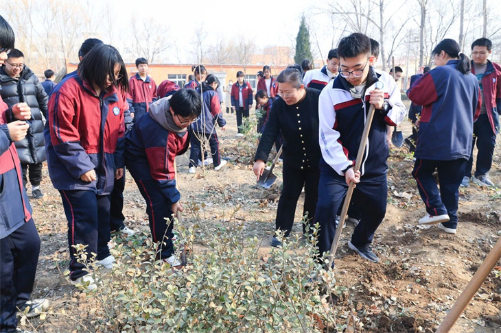 为了增强学生的绿色环保意识,倡导爱绿护绿行动,共赴与春天的美好约定。植树之前,高一年级主任孙月梅向同学们进行了植树节相关知识的科普,并发出发出爱绿护绿的活动倡议,学生们积极回应,誓要从小事做起,从身边做起,共创绿色家园。