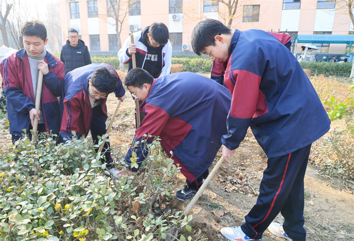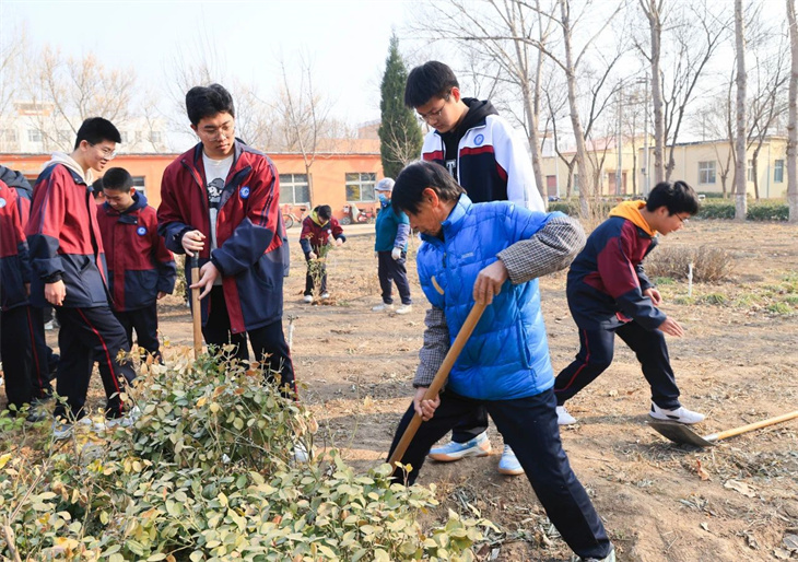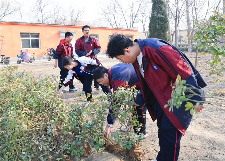 春风有约,青绿相伴。春意浓浓的三月里,同学们在老师和校园绿化师傅的指导下纷纷忙碌起来,拿起铁锹,小心翼翼地将小苗挖出来并进行松土,使其更适合种植。