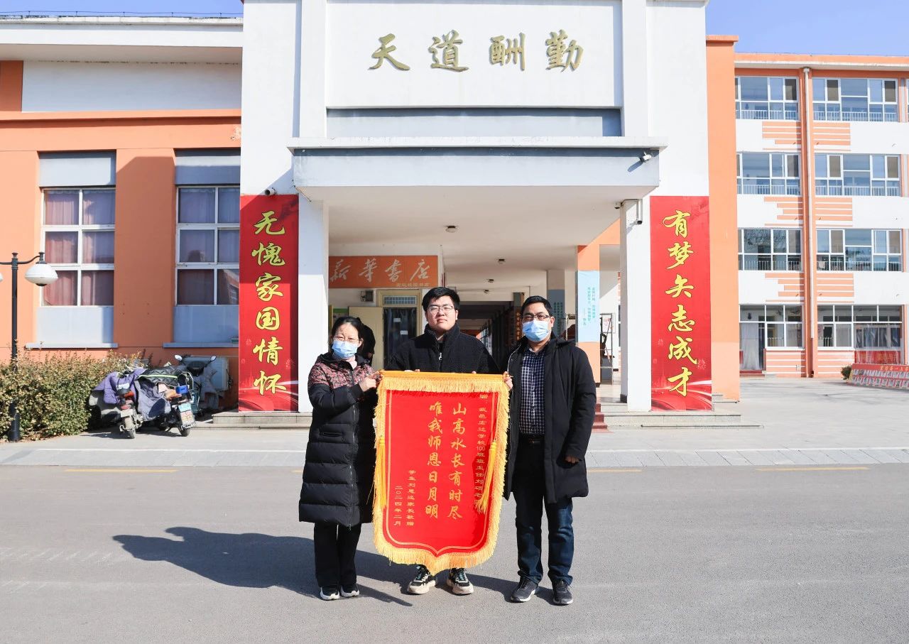 2024年3月9日,我校109班学生刘思远的家长带着对学校、班主任及任课老师的深深感恩之情将两面绣有金字“山高水长有时尽 唯我师恩日月明”、“春晖遍泽桃李树 硕果满挂琼瑶枝”的锦旗交到班主任刘硕及109班全体任课教师手中,以此表达对老师及学校的感谢。