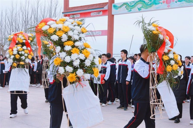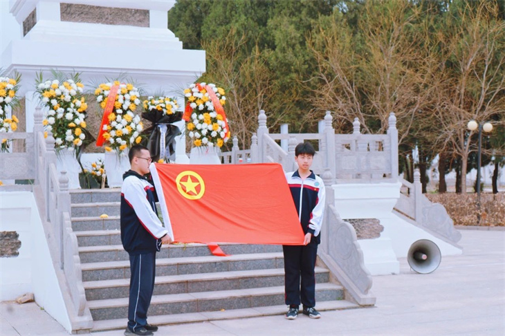 活动伊始,学生代表庄严地向英雄纪念碑敬献花篮,表达了我校师生对革命先烈的深切缅怀之情。随后,全体师生肃立,对英雄们默哀三分钟,以此向为国家独立、人民自由幸福而牺牲的英烈表示最高的敬意。