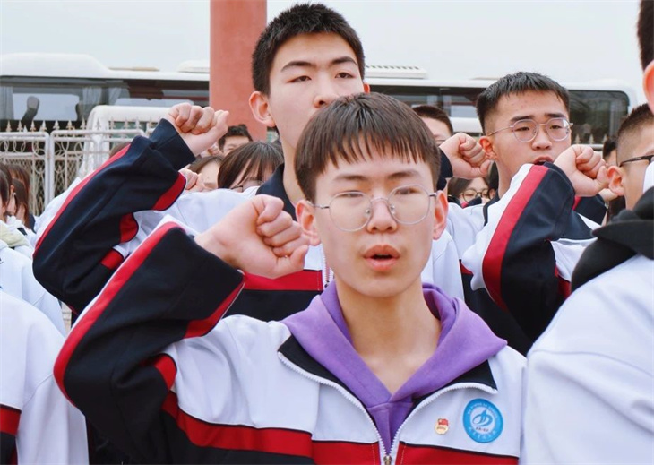 在激昂的国歌声中,学生们共同唱响对祖国的热爱和承诺,随后全体团员重温入团誓词,这一刻,每一个字每一句话都显得格外沉重,提醒我们要永远铭记革命先烈的伟大牺牲和光荣传统。