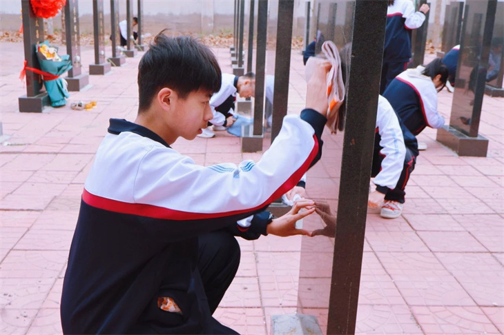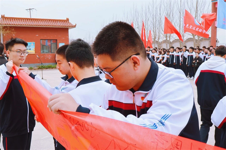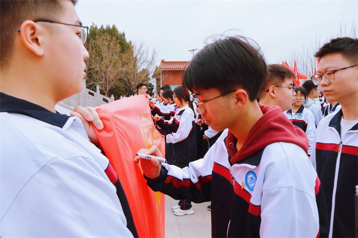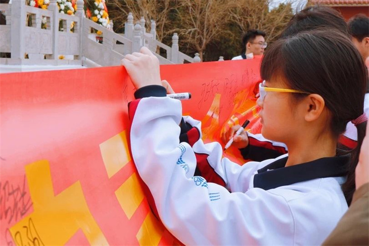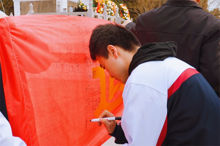 随后,学生们在条幅上庄严地写下自己的名字,这不仅是一种形式,更是一种承诺,时刻提醒自己不忘初心,牢记使命,继承和发扬先烈的光荣传统和革命精神。