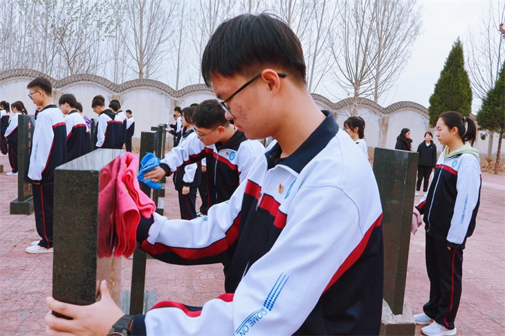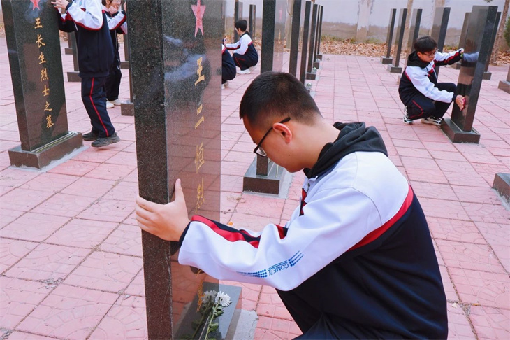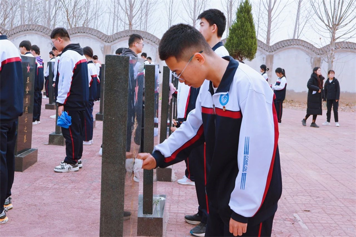 在老师们的带领下,学生们参观了纪念堂,详细了解了革命历史和英烈事迹。每一位同学都在静静地打扫英烈墓碑,每一次擦拭都充满了对英烈深深的敬意和缅怀。这份沉甸甸的敬意,转化为同学们心中前行的力量。