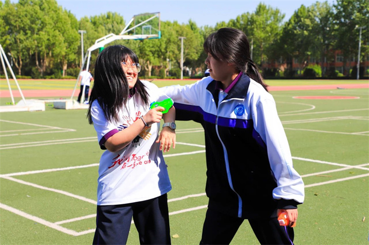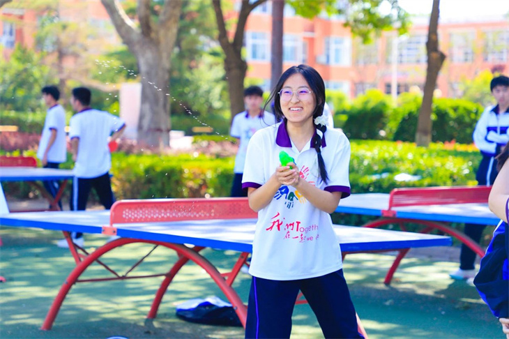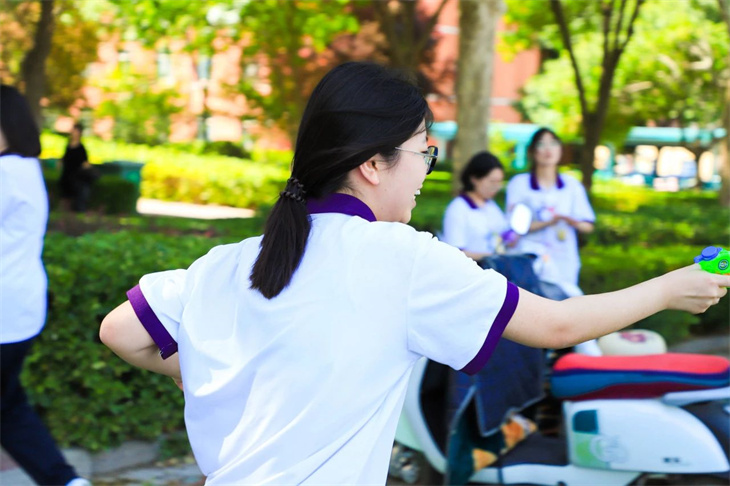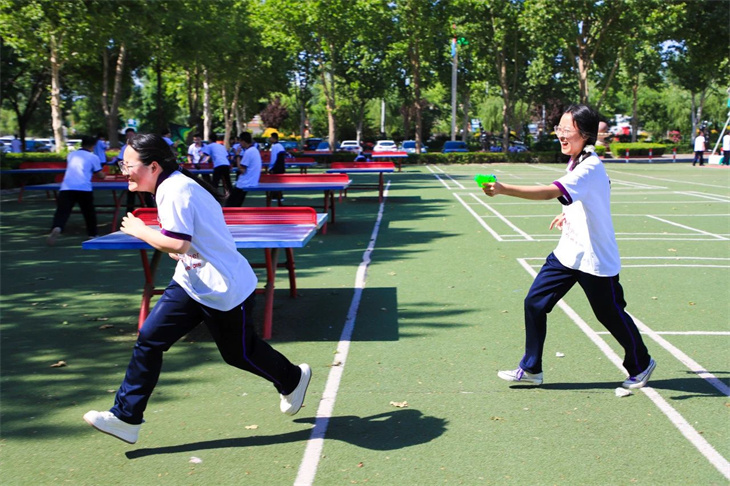 朝气蓬勃,心向阳开,宏达操场上的同学们激战正酣。水枪扫射,尖叫连连,软球捏捏,有趣好玩。同学们相互打闹、躲藏、追逐,“枪林弹雨”,笑声不断。