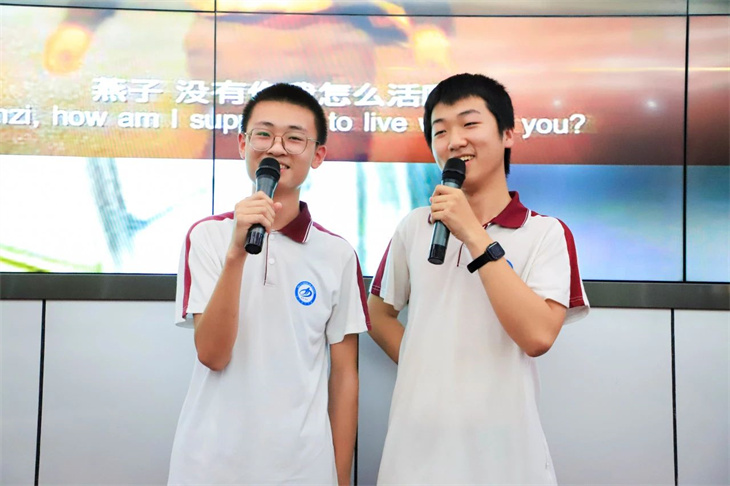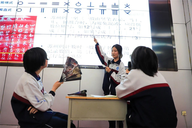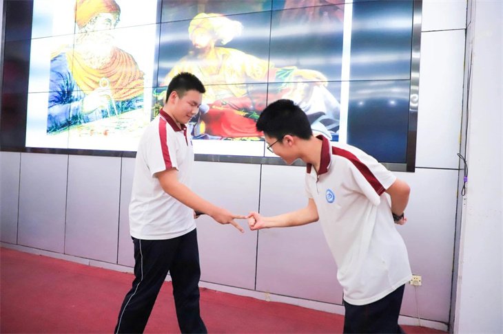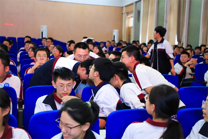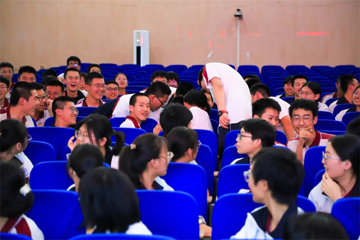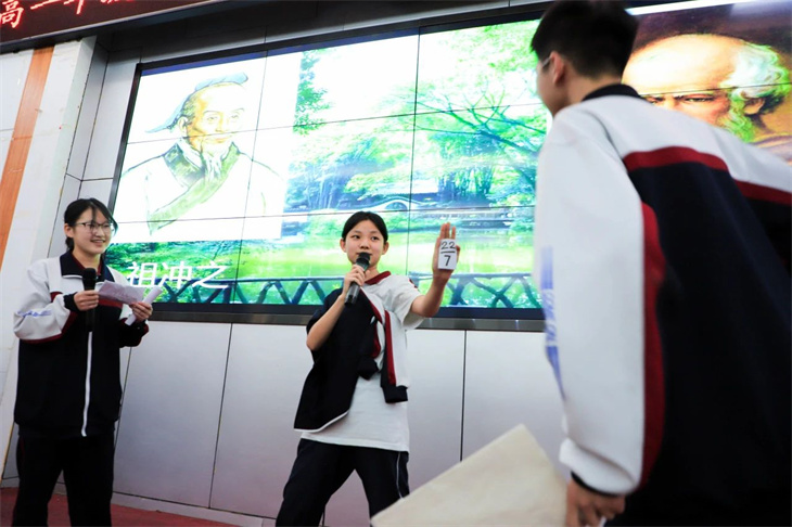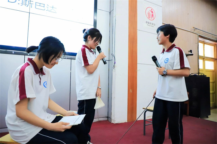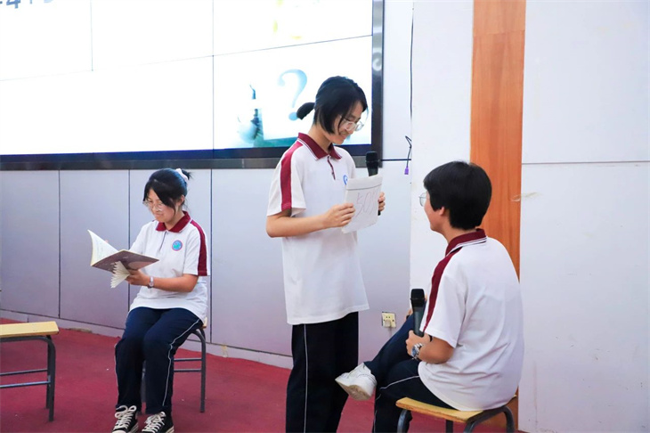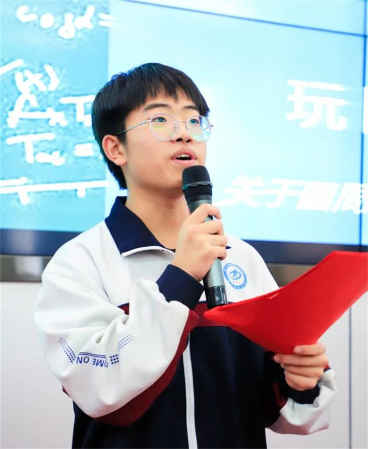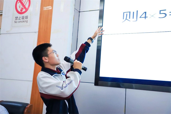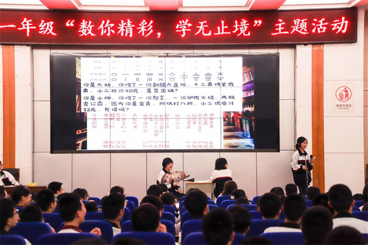 同学们的表演绘声绘色,动人心弦,情景创设、角色扮演,让中西方经典著作名人、同台“飚戏”,上演一场场跨越时空的对话,有趣的游戏、动感的舞蹈、诙谐幽默的语言、和谐融洽的师生互动……意想不到而又精彩绝伦的剧情轮番上演,将逻辑严谨的数学知识变成丰富灵动的剧情,不仅有对数学知识的解释,更以一种感性的方式呈现出理性数学背后的人文故事,让现场的师生都沉浸在数学的盛宴中,感受到不一样的学科快乐。