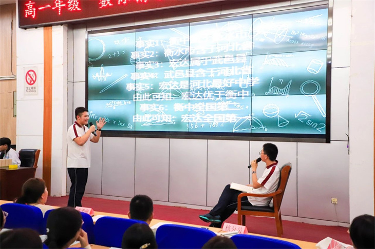 华罗庚说:“宇宙之大,粒子之微,火箭之速,化工之巧,地球之变,日用之繁,无处不用数学。”为培养学生热爱数学的情感,启迪数学知识的内在魅力,让数学课堂焕发生命的活力,让每一位学子享受学习的乐趣,武邑宏达学校高一年级于5月24日下午举行了“数你精彩 学无止境”主题活动。