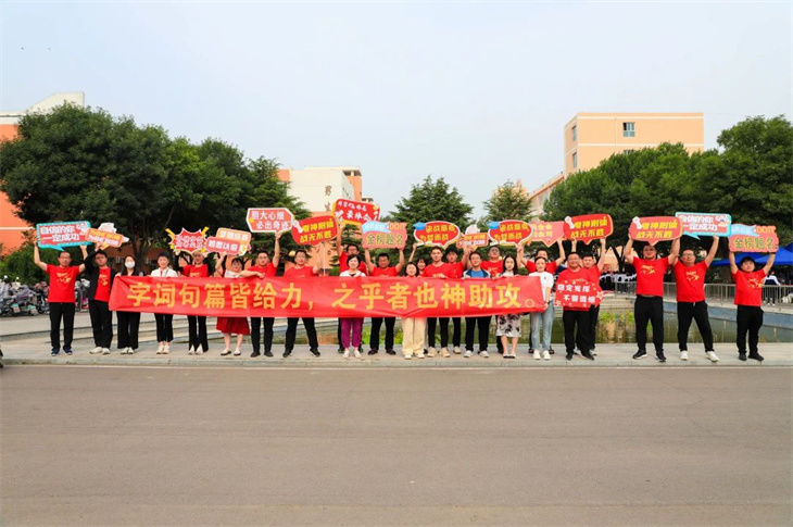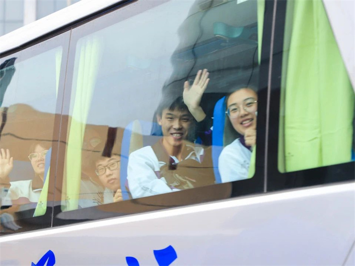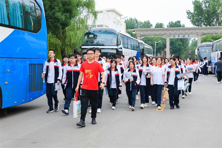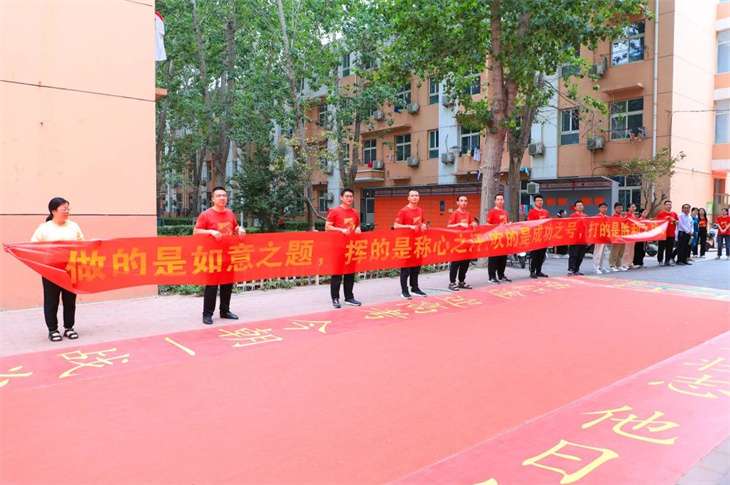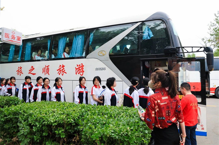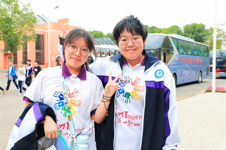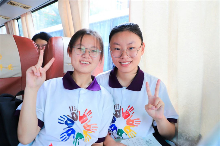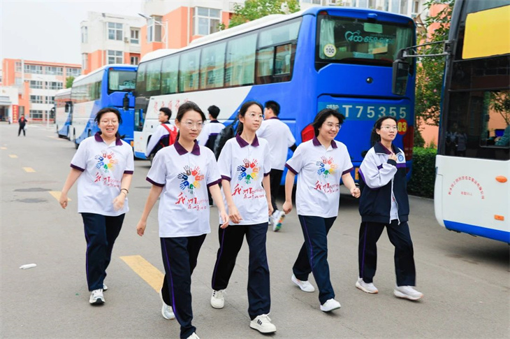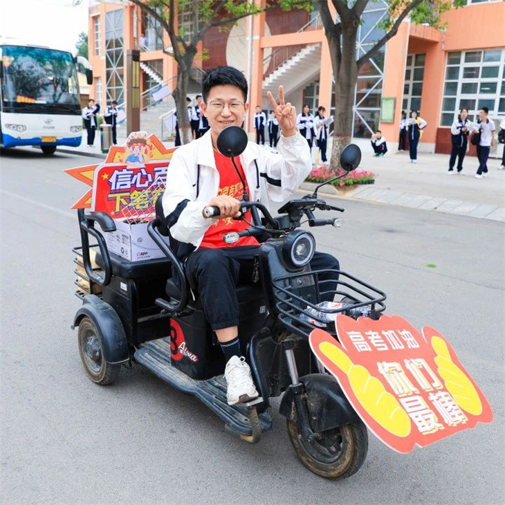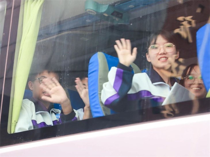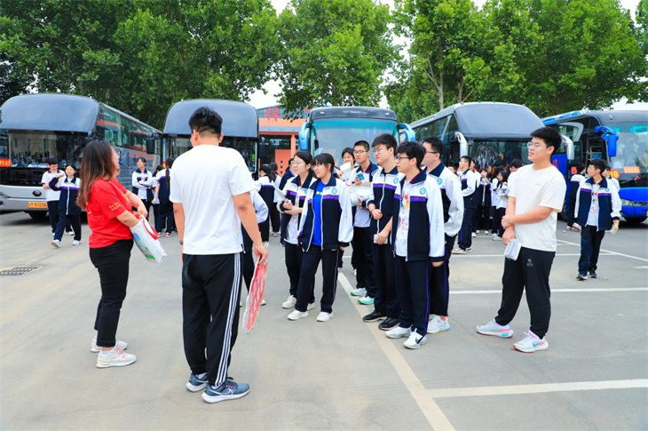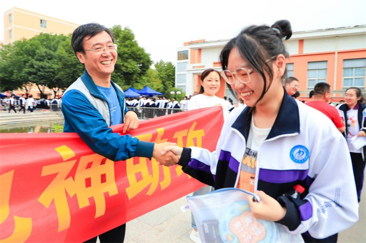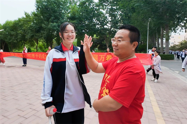 考场外,老师们身穿红衣或旗袍,手拿激励横幅,为同学们加油打气。同学们与老师们热切拥抱、激情击掌、握拳加油,和着老师的叮咛与嘱咐,带着真挚的祝福与期许安心开赴。逐梦同行,老师永远是同学们坚实的后盾!