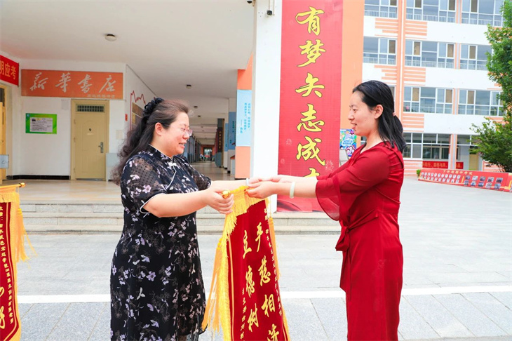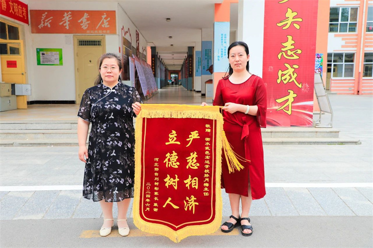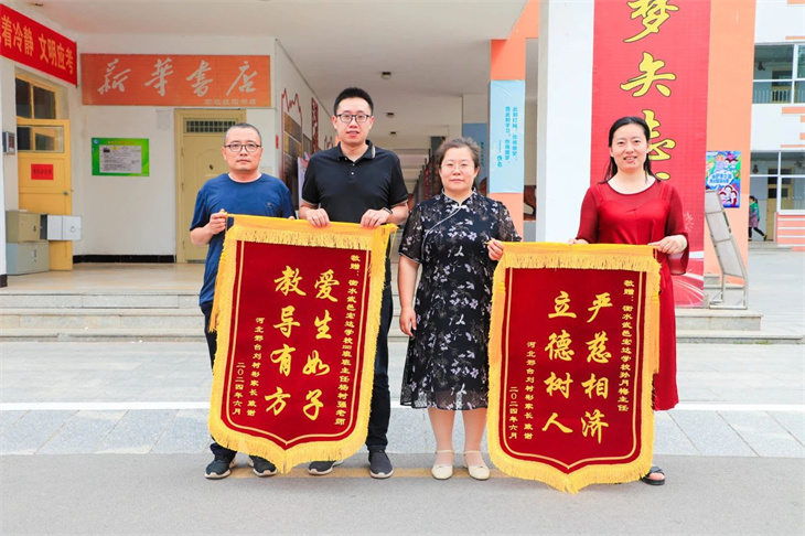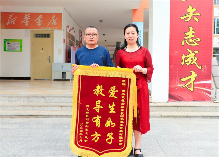 近日,我校2322班班主任杨树强老师收到了来自学生家长赠送的锦旗,锦旗上题着“爱生如子 教导有方”的字句,深情的文字,饱含了学生与家长对杨老师全心育人的深深谢意。此外,学生家长还为我校年级主任孙月梅送上了题有“严慈相济 立德树人”字句的锦旗,以表达对学校教育理念的高度认可,和对学校德育工作的深切肯定。