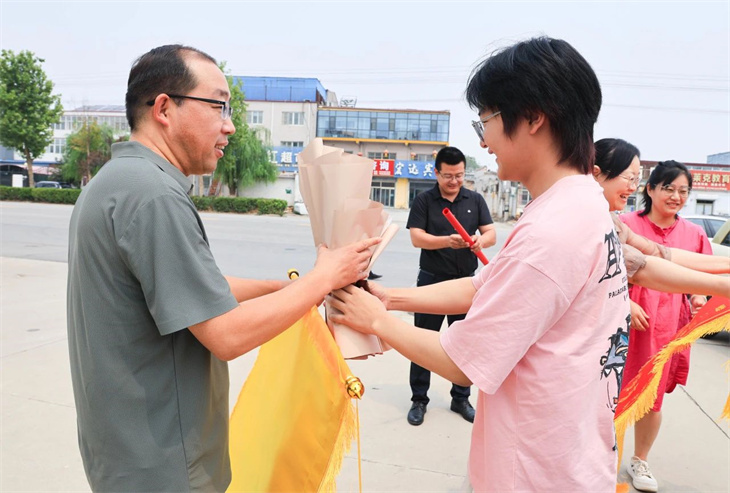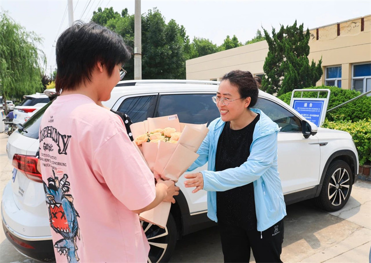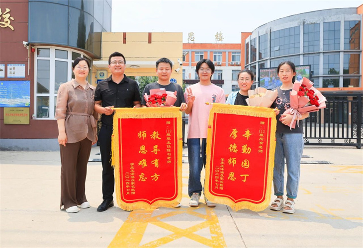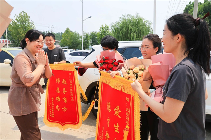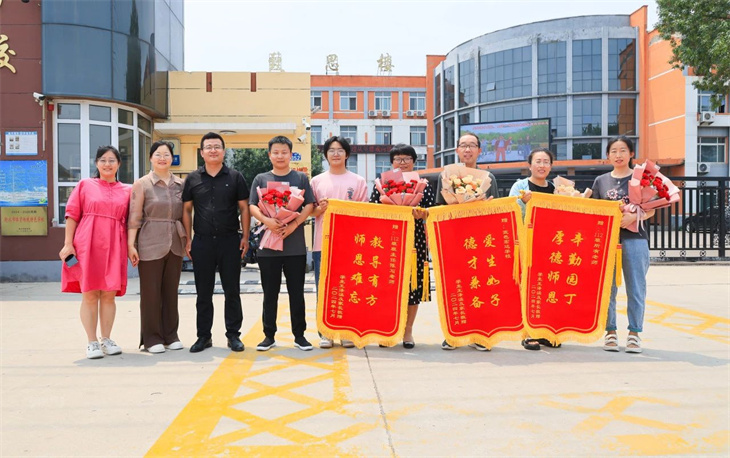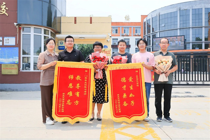 谆谆教诲,春风化雨,一朝沐杏雨,一生念师恩。7月3日,我校复读生王泽涵同学及家长来到学校,将鲜花和绣有“爱生如子 德才兼备”、“教导有方 师恩难忘”、“辛勤园丁 厚德施恩”的锦旗送到了学校,表达了对学校、班主任和老师们浓浓的感恩之情。此外,学生家长还为学校送来了一条横幅,校领导和老师们代表学校接收了条幅。