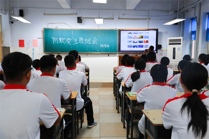 教室里,学生们目光专注地望着前方的大屏幕,一场关于“现代国防”的专题教育正在进行。通过观看宣传片和聆听教官的讲解,同学们明白了军训不仅是对身体素质的锻炼,更是对纪律性、团队协作精神和爱国主义情怀的培养。每一个动作、每一次集合,都是对军人风范的模仿与传承,都是对国家安全的守护与担当。通过这次学习,学生们不仅增长了见识,拓宽了视野,更在心中种下了保卫国家、报效祖国的种子!