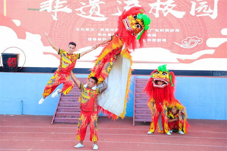 璀璨非遗,共赏技艺。从跳花绳、顶技、叠罗汉、滑稽戏,再到地圈、蹬技、舞龙舞狮,非遗表演团队巧妙设计、精心策划,通过高超的技艺、默契的配合,在欢腾跳跃、辗转腾挪间,上演着一场又一场极具力量与美感的非遗艺术视觉盛宴。