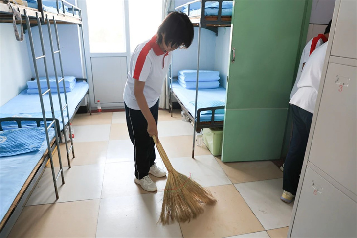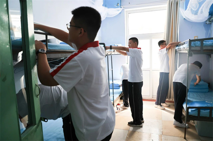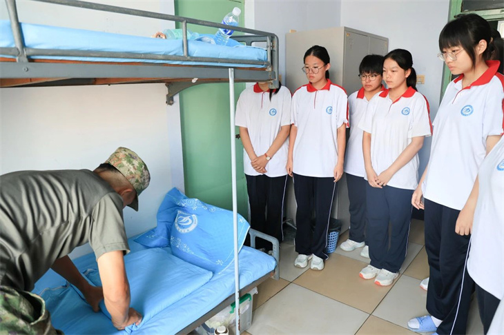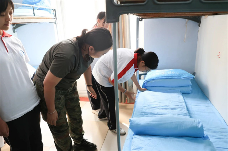 收拾内务是培养生活自理能力的一个重要方面。通过教官的亲身示范和指导,学生能够更迅速地学会这一技能。此外,教官亲自教授叠被子的过程,不仅传递了军队的优秀传统和文化,还帮助学生深入理解军队的精神和纪律要求。