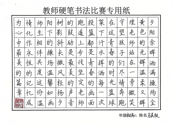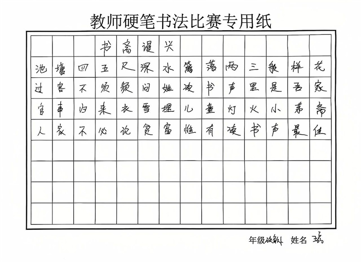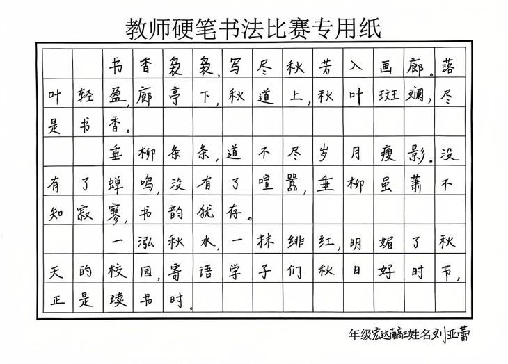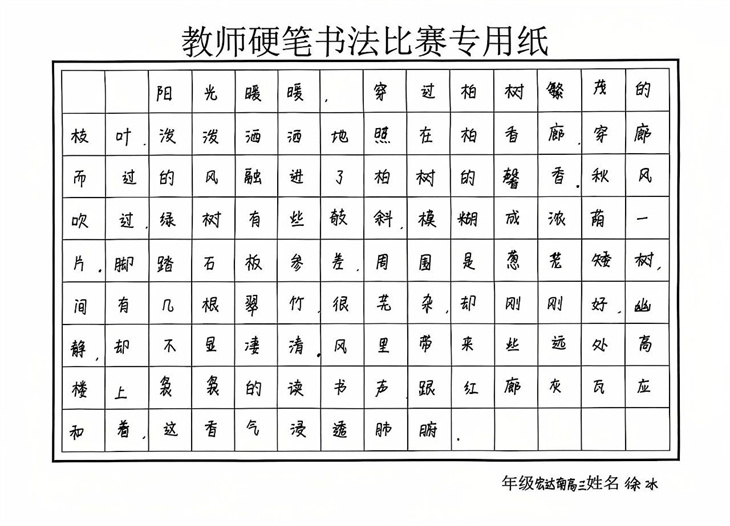 在硬笔书法作品展中,一幅幅作品,或楷书端庄,或行书流畅,每一笔每一划都透露出老师们深厚的书法功底和对传统文化的热爱。它们不仅是对校园美景的描绘,更是对中华优秀传统文化的传承与弘扬。