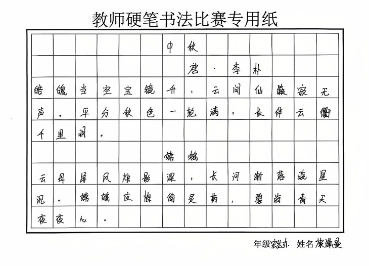 随着中秋佳节的脚步日益临近,校园里弥漫着一股温馨而浓厚的节日氛围。为了弘扬中华传统文化,增进教职工之间的情感交流,同时丰富大家的课余文化生活,学校精心策划并启动了以“我与我深爱的校园”为主题的绘画及硬笔书法比赛活动。