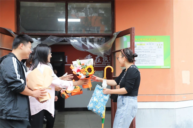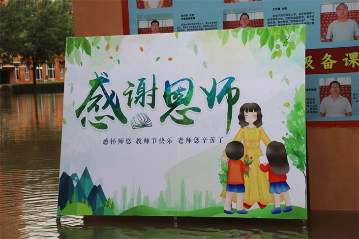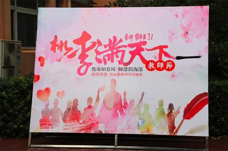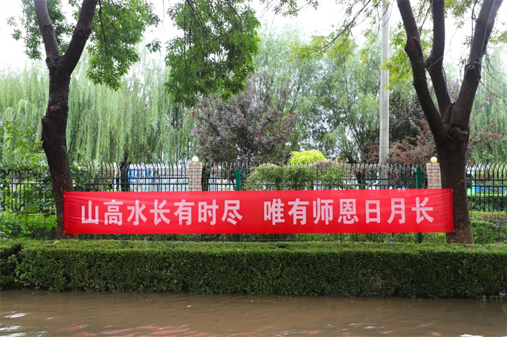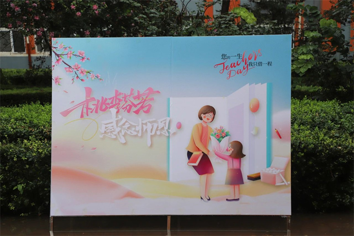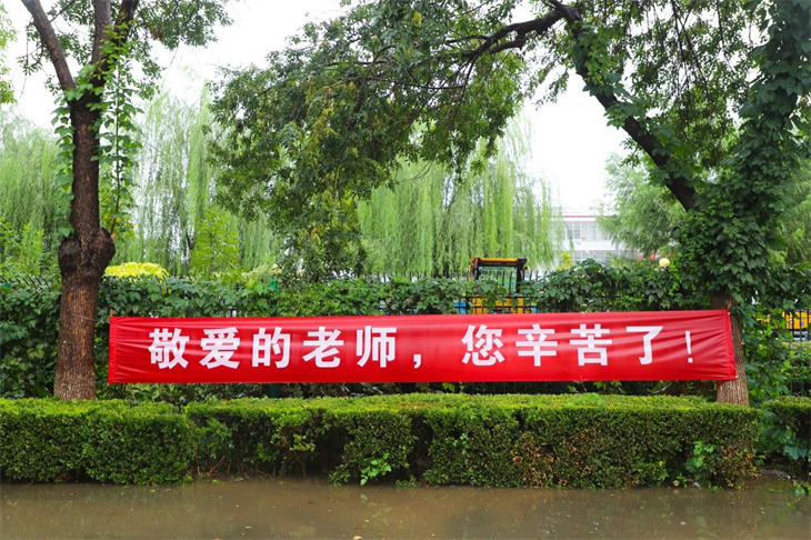 在这个特殊的日子里,老师们感受到了来自学校的温暖——关于教师节的大屏、条幅、展示牌、鲜花......雨水洗净了校园的每一个角落,也洗净了老师们心中的疲惫,让他们以更加饱满的热情投入到新的一天的工作中。