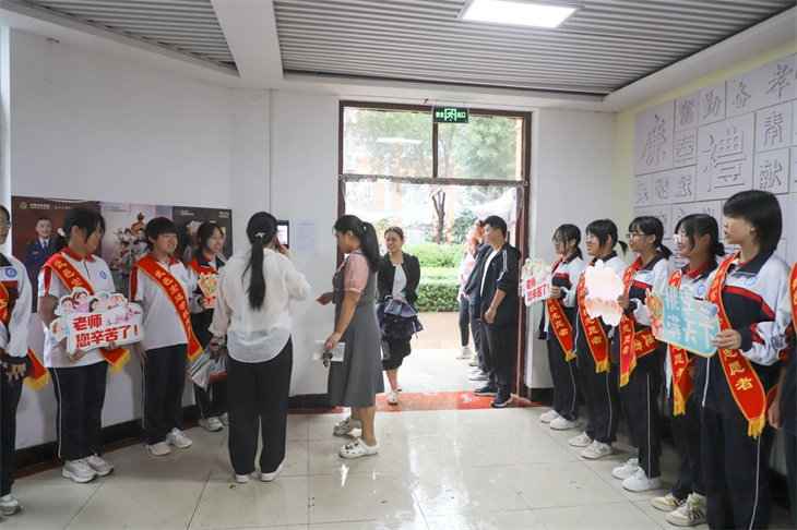 在这个充满意义的清晨,每一位老师都感受到了来自学生和领导的深深关爱。学生们自发地排成两列,用热烈的掌声和欢呼声迎接每一位老师的到来。老师们脸上洋溢着幸福的笑容,仿佛整个世界都被这份温暖所包围。