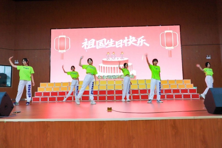 为祖国庆生,用青春告白。本次汇演活动师生分组共为祖国献礼。昂扬的歌声饱含对祖国的深情,蹁跹的舞姿挥洒对祖国的祝福,喜悦的笑容洋溢在每一个人的脸上,沸腾的热血奔涌在每一个人的胸腔。此起彼伏的欢呼与掌声,是青春热情的海洋。