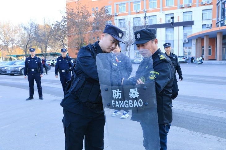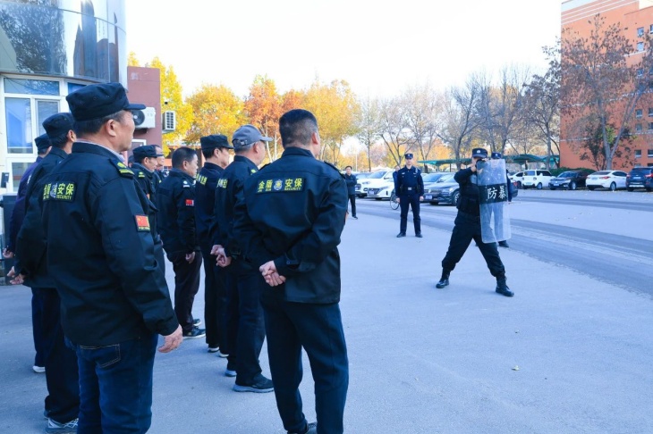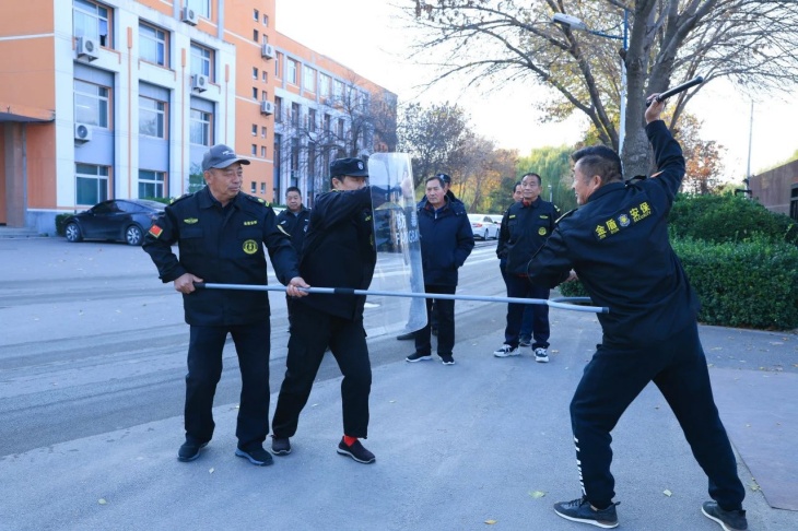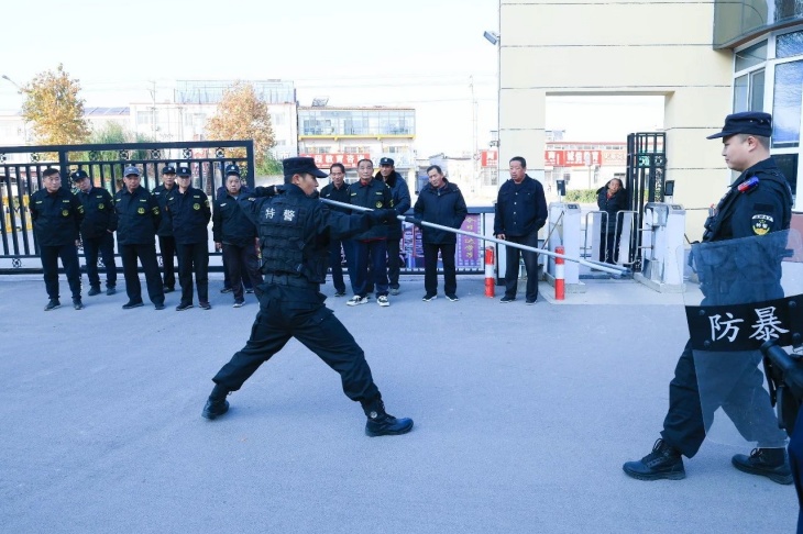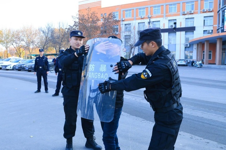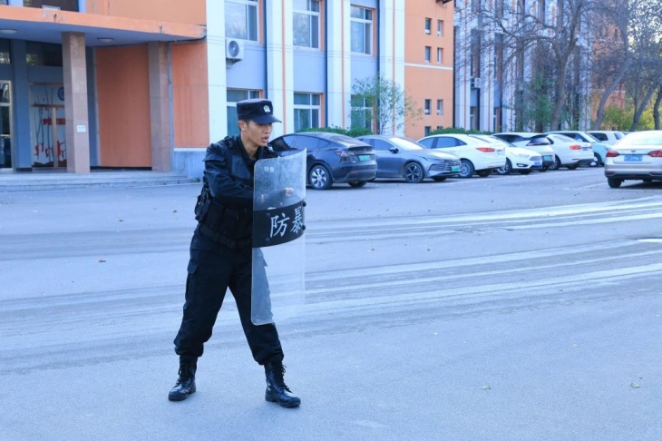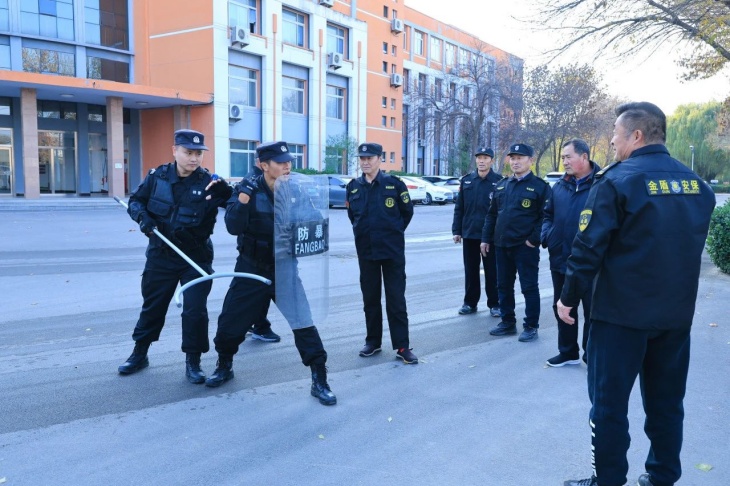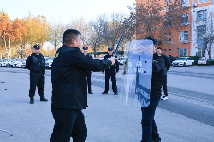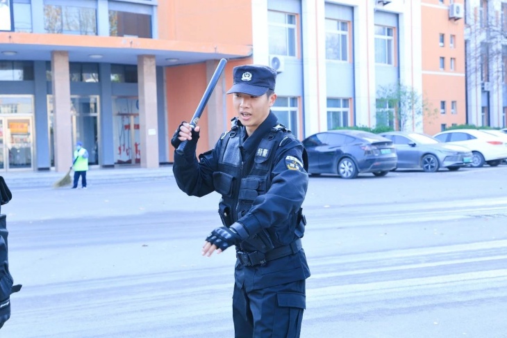 随后,警务实战教官详细讲解并现场示范了盾牌、钢叉、警棍等器械的正确使用,确保每一位保安都能有效提升使用装备技能,切实提升了学校保安的实战技能。