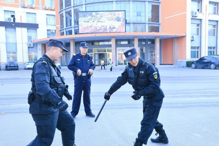 平安校园┃武邑县新区派出所联合特巡警大队针对我校保安组织开展技能培训
