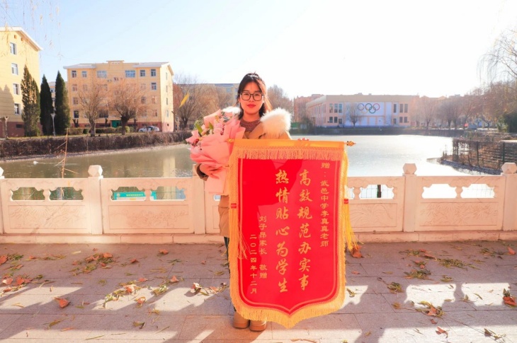 时光回溯,学生毕业时需将团组织关系转出,刘子昂同学毕业后因故未转出,联系到母校后,政教处李真真老师积极寻找解决方法,帮助学生处理团关系转接流程,成功解决了学生的难题。随后学生及家长以鲜花与锦旗赠送给李老师表达自己真挚的感谢之情。收到锦旗后,李老师表示真的很高兴收到学生家长的鲜花与锦旗,没想到这件事学生家长们念在心里,这面珍贵的锦旗,是对自己及学校服务工作的肯定与鼓励,今后将再接再厉,优质服务,不辜负师生家长的期望。