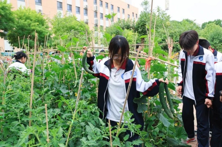 本学期,我校高一年级学生在学校种植基地里种上了黄瓜、西红柿、生菜等一系列蔬菜。经过种植、洒水、锄草、施肥、搭架等一系列的步骤,如今,他们迎来了黄瓜大丰收。高一年级集体组织部分班级学生开展了一场黄瓜采摘活动,不仅让学生们体验到了劳动的乐趣和收获的喜悦,更让他们深刻体会到了“一分耕耘,一分收获”的道理。