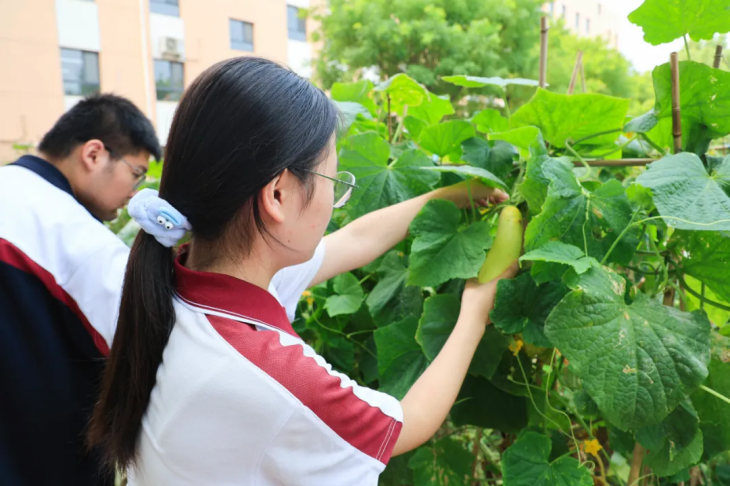 7月9日,一周一次的采摘活动来啦,孩子们再次走进校园劳动实践基地,开启了一场采摘活动。经过前期的精心栽培和养护,宏达高一孩子们亲手种植的蔬菜长势喜人。夏日的校园劳动基地已是瓜果飘香,硕果累累。