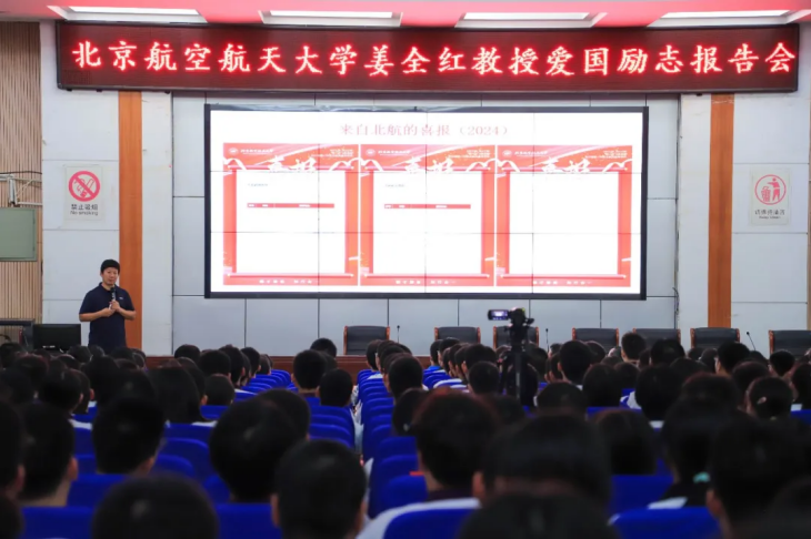 9月18日,一场精彩的爱国励志报告会在武邑宏达学校报告厅举行。北京航空航天大学姜全红教授应邀作“爱国、励志、理想”主题的报告。本次报告会采取报告厅主会场和班级分会场视频直播相结合的方式进行。