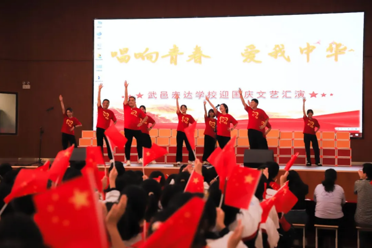 在祖国母亲75周年华诞到来之际,武邑宏达学校在校体育馆精心举办了“迎国庆文艺汇演”活动,我校师生欢聚于此,满怀对祖国的热爱与热忱,以气势昂扬的歌声、精彩绝伦的舞蹈、发自肺腑的朗诵,向祖国母亲献上来自宏达的赤诚祝福。