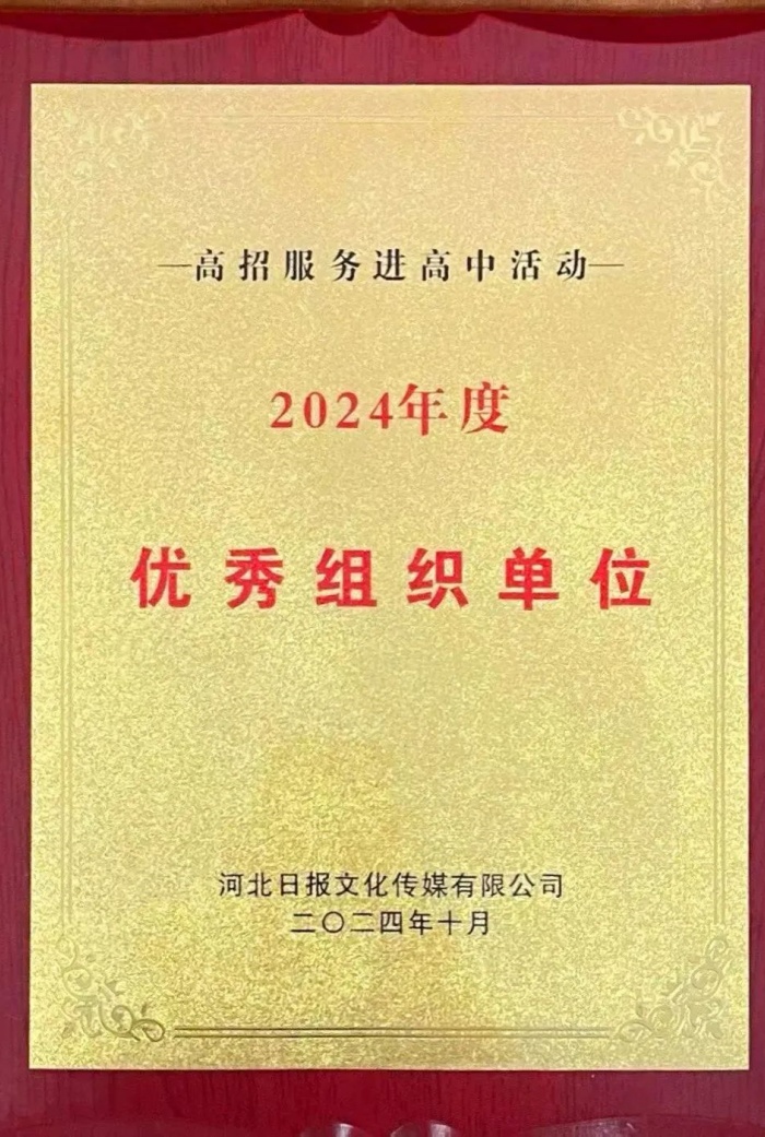 喜讯!我校在河北日报社举办的高校招考服务进高中活动中荣获“优秀组织单位”称号